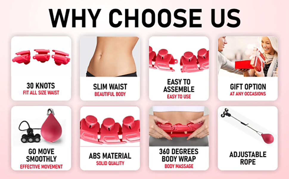 - 【FITS ALL SIZES AND SHAPES】- Our fitness hoop consists of 30 detachable knots which can be adjusted easily according to your waistline, SUITABLE FOR WAIST SIZES up to 60 inches. Also, Rotating hula ring are suitable for all people of all skill levels, from beginners to experts.