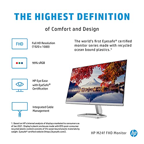 HP M24f Ultraslim Monitor, Full HD (1920 x 1080) 23.8 Inch (1 HDMI, 1 VGA) – Silver / Black