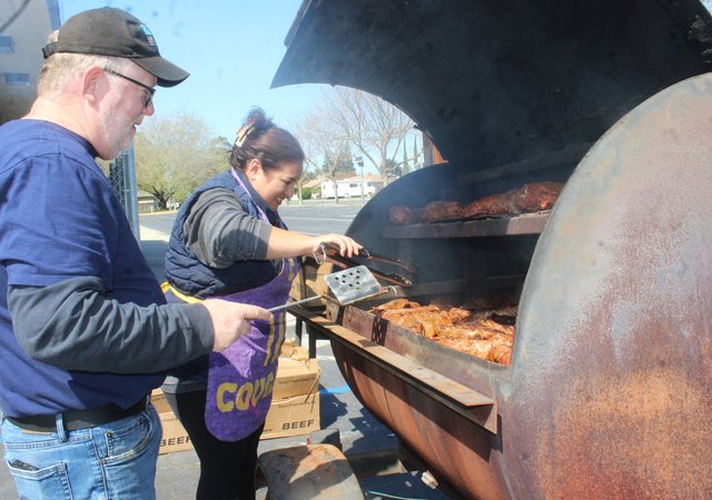 With the major fundraiser – the annual tri-tip drive-thru dinner – hosted this past weekend, officials with the Sober Grad committee have officially kicked off their fundraising efforts for the Class of 2023. The goal is to put on a safe and memorable graduation night party for Escalon High School seniors, and the tri-tip dinner provides a solid base from which to work. “We sold 200 dinners, pick up was 4:30 p.m. to 6 pm. here at El Portal,” Sober Grad committee member and BBQ coordinator Renee Snow said on Saturday morning, April 1, as crews came in to prepare the meat and begin the process of putting together the dinners, designed for a family of four. “This is the only fundraiser we do for the Sober Grad night.”