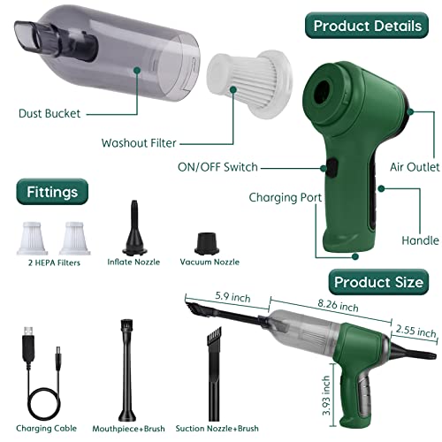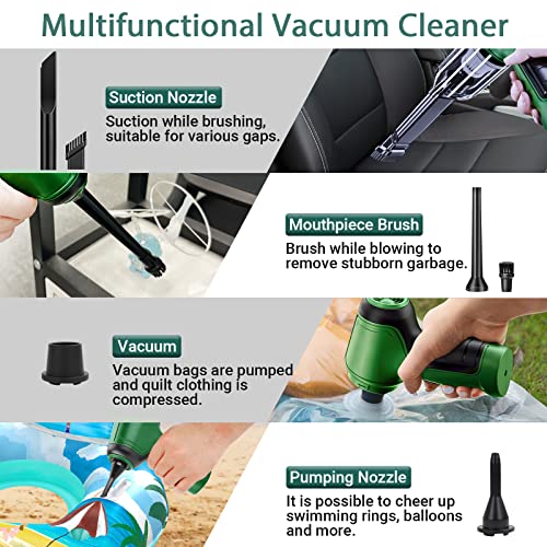 🏠 【Multifunctional Vacuum Cleaner】The handheld vacuum cleaner with Vacuum and blow. Can be used to clean home/office/car/carpet/computer host keyboard, etc. Can be used as an air pump to inflate swimming rings/balloons, etc. Can be used as a vacuum pump to vacuum the compression bag.