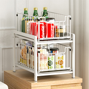【Easy to assemble】The sliding basket organizer is easy to assemble. There is installation instruction in the package.No drill, no power tools needed,you can finish it in several minutes. 【Made from quality materials】The cabinet organizer is well made from quality material.The simple design is well suitable for various different home decoration styles.High quality, sturdy and practical.