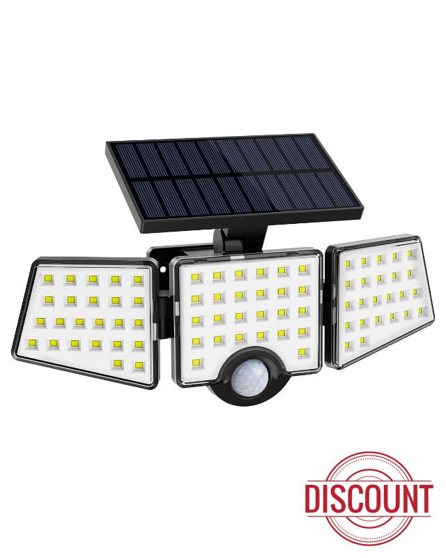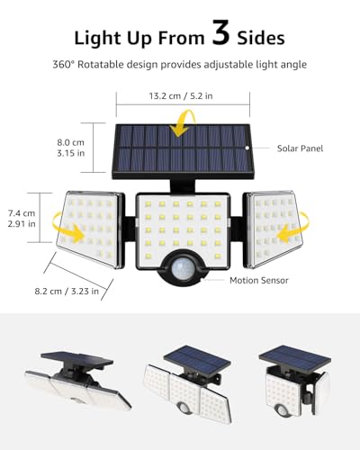 [3 Heads Solar Powered Security Light] With 3 adjustable light heads, LE outdoor solar light can be rotated 360 degrees for any angle your need. This solar floodlight with 1200LM can provide wider and more flexible range of light for the place you need.