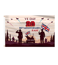 - 【HIGH-QUALITY MATERIALS】: Our VE Day 80th flags are made of 100% durable fabric, which is waterproof and does not easily get faded, curly and deformed, perfect for outdoor decoration.Double-stitched all around the edge and strengthened by a canvas header and two brass grommets.