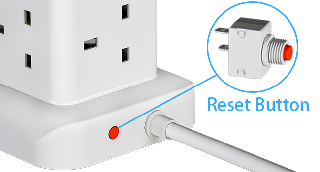 Overload Protection Switch:Our 4 way extension lead is equipped with overload-protection switch-a reset button. When strong current occurs suddenly, the overload protection switch of this power tower will automatically power off. Just press the button to resume use. Which can effectively prevent your devices from excessive heat and damage.