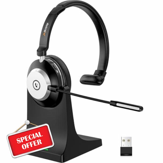 Bluetooth Headset, Wireless Headset with Microphone for PC