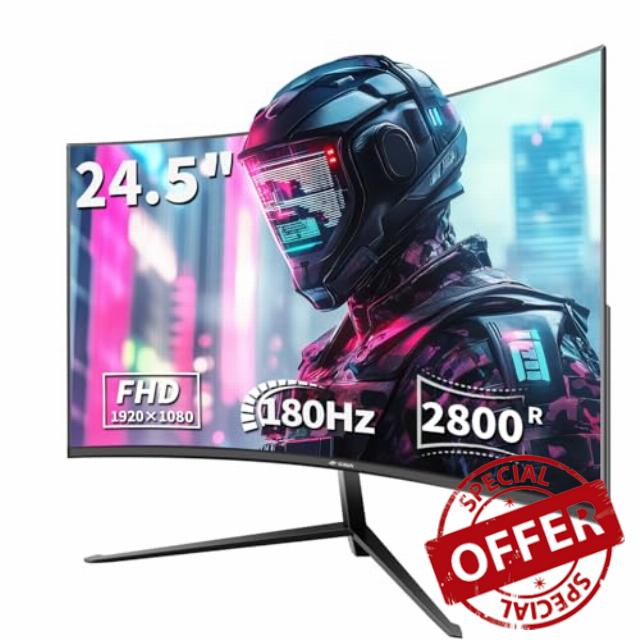 24.5inch Gaming Monitor: 24.5inch FHD 1920x1080p curved display adopts blue light filter eye protection technology,3000R curvature, 178° wide viewing angle, 180hz fast refresh rate, and 2ms response time, to enhance the overall experience of any game, while providing a vital advantage in e-sports, for You bring the ultimate gaming experience. 180Hz refresh rate can be achieved through DP 1.4 cable; HDMI2.0 only achieves 120Hz refresh rate.