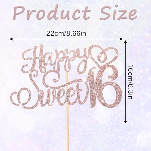 Perfect Size For Stunning Visual Impact: measuring 6.0 inches (15.2 cm) wide and 8.7 inches (22 cm) tall, this rose gold sweet 16 cake decoration is designed to stand out. its elegant size and glittery appearance make it a striking addition to your cake, ensuring it becomes the highlight of your celebration.