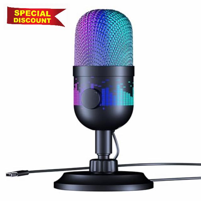 The condenser gaming mic has a quick touch mute button that allows you to turn mute on or off. Long press to turn the RGB lighting on or off.