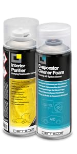 Evaporator Cleaner Foam: the foam adheres perfectly to the surfaces of the A/C system for deep cleaning. Interior Purifier: removes contaminants from all cabin surfaces and improves air quality.