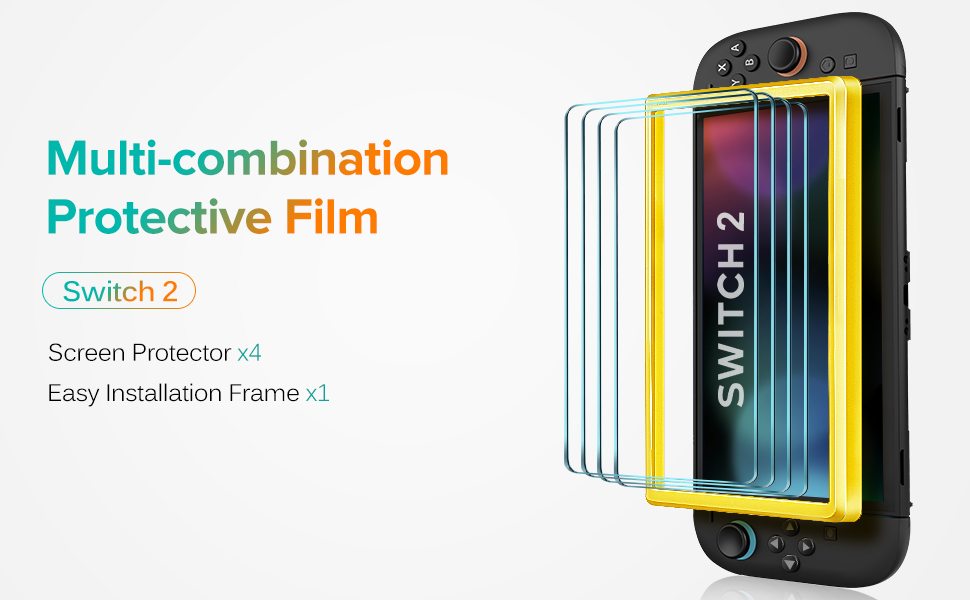 ivoler 4 Pack Screen Protector Compatible with Switch Nintendo 2 Model 2025 with Alignment Frame Tool, Tempered Glass Protection Film – without air bubbles -Ultra Resistant Hardness 9H