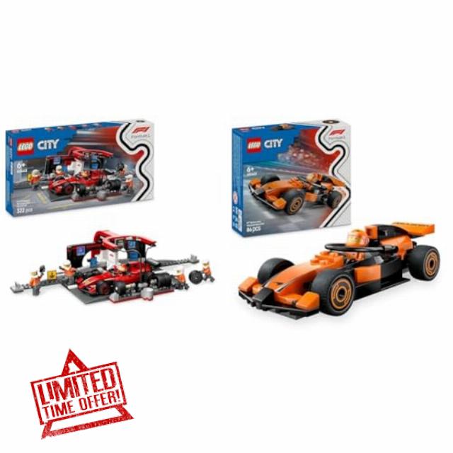 LEGO City F1 Pit Stop & Pit Crew with Ferrari Car + F1 Driver with McLaren Race Car Toys Formula 1 Set for Motorsport Fans 60443 + 60442