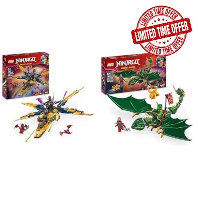 LEGO NINJAGO Ras and Arin’s Super Storm Jet + Lloyd’s Green Forest Dragon Figure Ninja Gift Idea for 6 Plus Year Old Boys, Girls 71833 + 71829