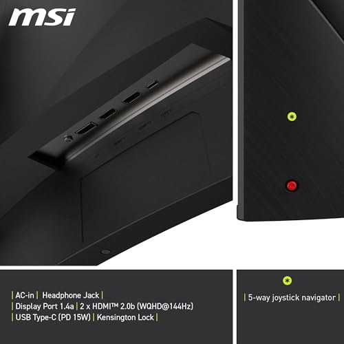 HDMI CEC CONNECTIVITY – PC console & laptop interface options include DisplayPort 1.4a (WQHD / 240 Hz max.) , HDMI 2.0b CEC ports (WQHD / 144 Hz max.) & USB Type-C with Power Delivery (15W); The monitor rear features a 5-way joystick navigator