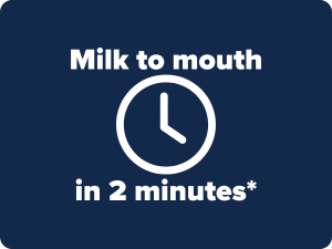 Pour your perfectly cooled feed into a sterilised bottle, and you are ready to serve – in as little as 2 minutes.