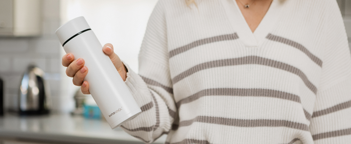 Once you have added the milk formula, give the RapidCool a shake, tipping it upside down to ensure the water reaches the thermometer in the lid of the RapidCool.