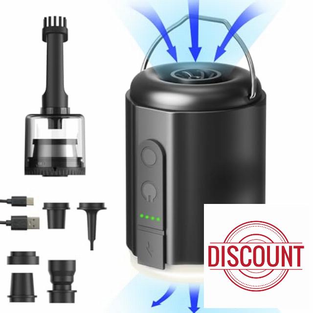 Equipped with 5 nozzles, suitable for most small products, not suitable for balloons, basketballs, tires. It not only supports inflation but also deflation of items. The 70ml dust collection box and brush-equipped vacuum nozzle can be used for cleaning dust, hair. (Note: Performance is inferior to professional vacuum cleaners and extraction equipment)
