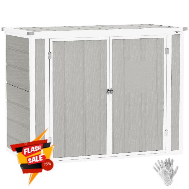 Secure locking system: This outdoor storage shed features two latch-equipped doors for easy access and secure locking, keeping your bins and belongings safe.