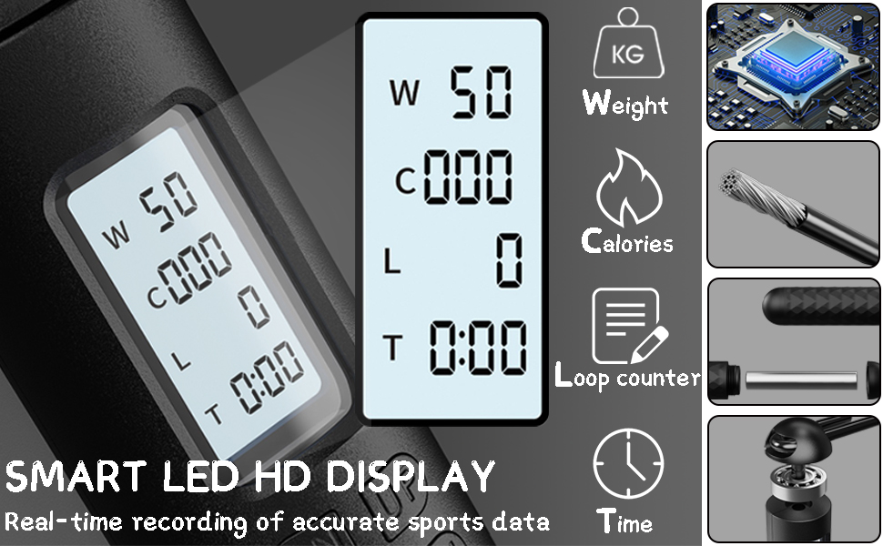 【Digital data display】The built-in high-definition LCD backlight display can clearly display important data such as weight, timing, number of jumps and calorie consumption, helping users track and adjust their fitness progress.