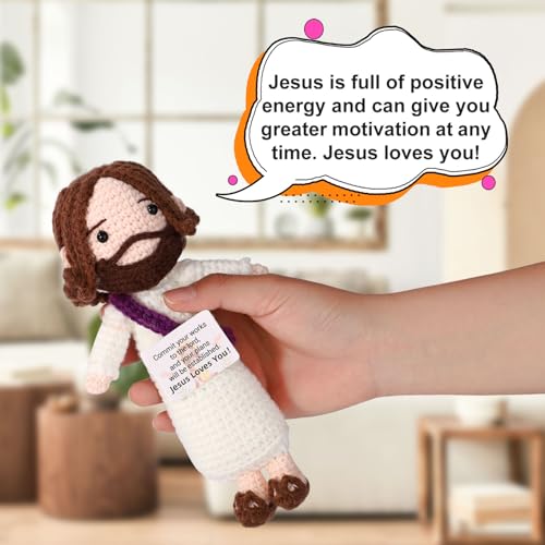 Thoughtful Design: The size of positive jesus is 17x6cm/6.7×2.36in, which fits perfectly in any space as a reminder of divine grace. Tightly crocheted to prevent unraveling, this doll features classic biblical details.
