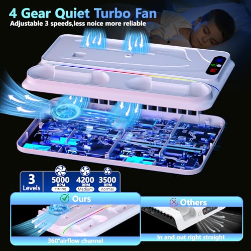 - 3 Turbo Slient Cooling Fan :Our ps5 cooling station is equipped with a powerful turbo fan featuring three adjustable level fan speeds,provides efficient and low-noise cooling to significantly reduce your console's temperature