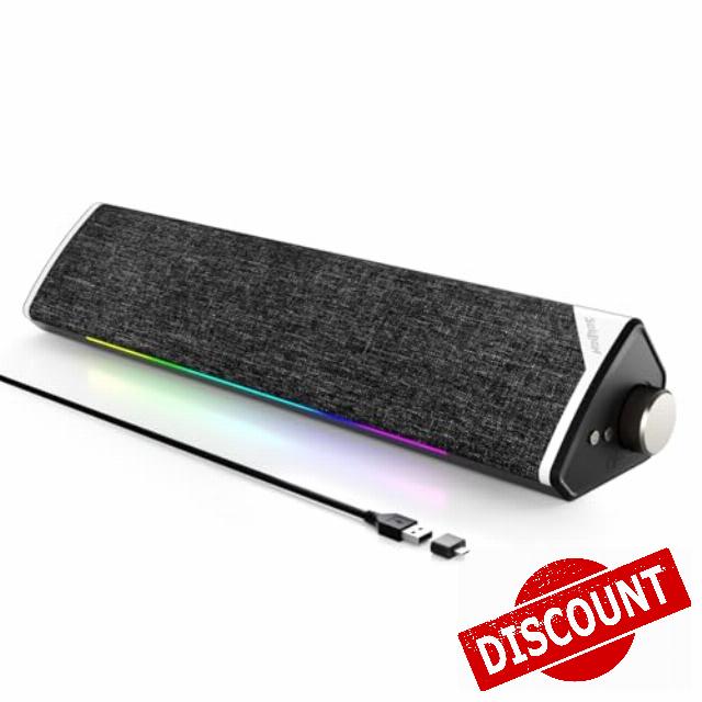 - [Wide Compatibility]: The PC speaker is powered by the USB port. Plug & Play. No drivers or software need to be installed. The soundbar is easily compatible with most devices such as PC, laptop, tablet, smartphones. NOTE: No matter which connection you use, you need to connect the USB port for power. A USB-A to C adapter is included.