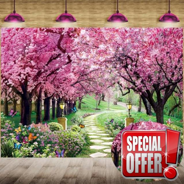 Spring Scenery Photography Backdrop 7x5FT Spring Garden Flowers Tree Path Landscape Background Wedding Baby Shower Birthday Party Decorations Photo Booth Props