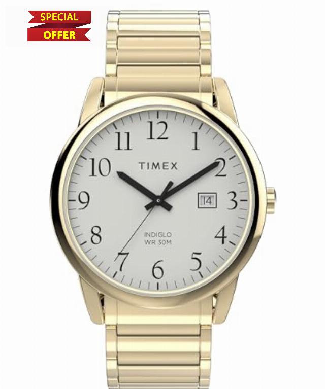Timex Men's Easy Reader 40 mm Watch – Gold-Tone Stainless Steel Expansion Band White Dial Gold-Tone Case TW2W52
