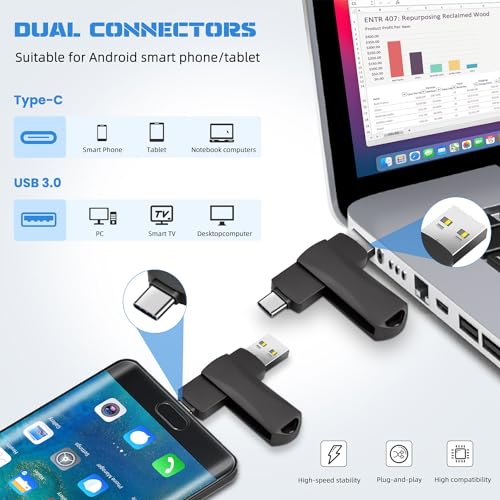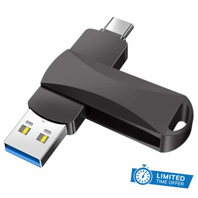 - 2-in-1 USB Stick: The usb stick 512GB with two ports is perfectly equipped with a USB-Type C port and a USB port, and allows for more convenient data transfer between smartphone/tablet and computer. Easily transfer between multiple devices in seconds.