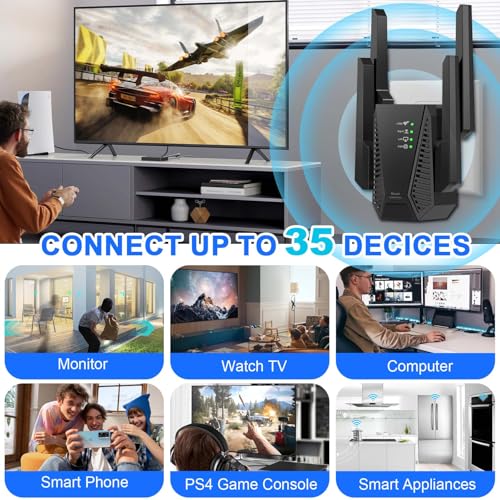 - Adjustable Antennas for Stronger Signal – Four external adjustable antennas offer superior WiFi range extension, ensuring reliable connections and optimized performance across your home network. Ideal as a WiFi booster range extender.