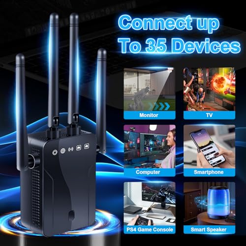 - 【Perfect Compatibility】Expand the Wi-Fi coverage of any Wi-Fi router or wireless access point.Compatible with any WiFi-enabled device, such as smartphones, laptops, gaming consoles, garage doors, IoT devices, Alexa, IP cameras, and Fire Stick TV