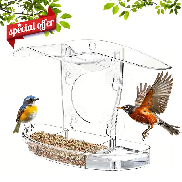 - Durable Construction: Made from high-quality acrylic material, ensuring long-lasting use and easy cleaning. This window bird feeder features 4 extra strong suction cups that can maintain a safe grip even when multiple birds are feeding simultaneously