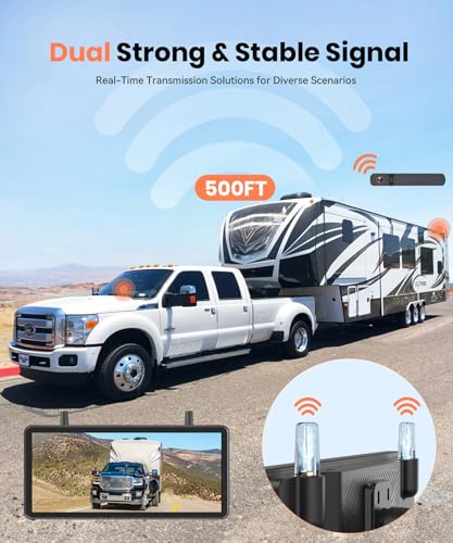 - Powerful Dual Antenna Signal Transmission: Thereversing camera kit for vans will generate an unbreakable digital signal, reaching up to 500ft. Compatible with large trucks, trailers and RVs of various size
