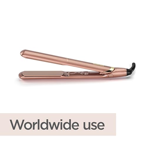 BaByliss Rose Gold Hair Straighteners – Ceramic Plates for Smooth Styling, Multi-voltage Worldwide use, Ultra-fast 15 Second Heat Up, 3 Heat Settings Up To 235°C, 2598BU