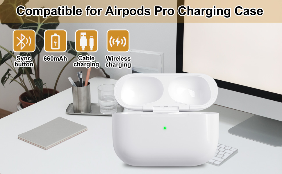- Wireless Charging Case for Airpod pro charging case has Bluetooth pairing sync button and easy pairing for earbuds.