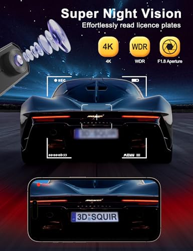 - 【Ultra HD 4K+1080P Dash Cam Front and Rear Camera】This dash cam comes equipped with a 4K Front + 1080P Rear camera that captures clear and sharp footage at a remarkably high resolution. Day or night, it captures license plates and road signs with impressive clarity, providing crucial evidence for any potential accidents. Besides, the front 170°wide-angle and rear 140° viewing angle dash camera for cars means you can capture more of the road and surroundings.