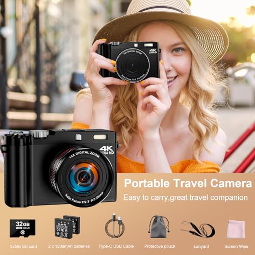 - 【Dual 1200mAh Batteries and 32GB Memory Card】Equipped with two 1200mAh detachable lithium batteries, this camera ensures long-lasting power for extended shooting. Whether it’s a day of travel or a long family event, the battery life is more than enough, and you can swap them easily to avoid interruptions. The included 32GB high-speed TF card offers ample storage for your travel photos, family videos, and blog content, reducing the hassle of frequent memory card changes.