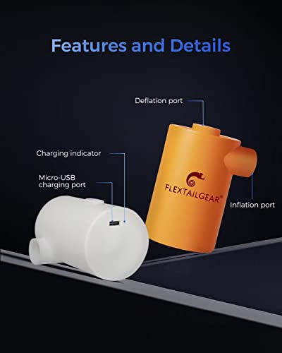 FLEXTAILGEAR MAX Pump 2020, Portable Electric Air Pump, 3600mAH Battery,Rechargeable, High Flow 300L/min, Fast In/Deflating, Air Mattress, Swimming Ring, Vacuum Storage Bags, Camping & Travel