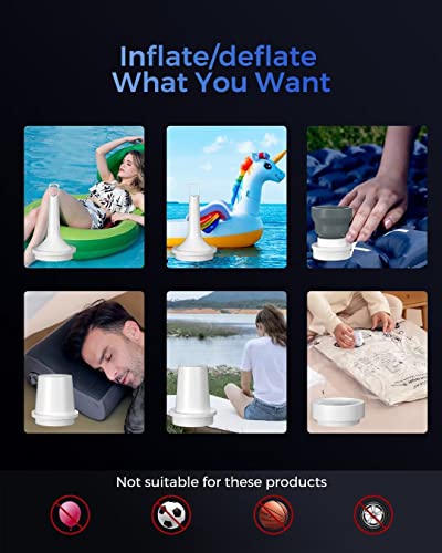 【Extensive Applicability】The MAX PUMP 2020 is equipped with four nozzles, and can inflate most of the inflatable products, like the air Sleeping pad, air bed, air mattress and air toys , lifebuoy and vacuum storage bags.