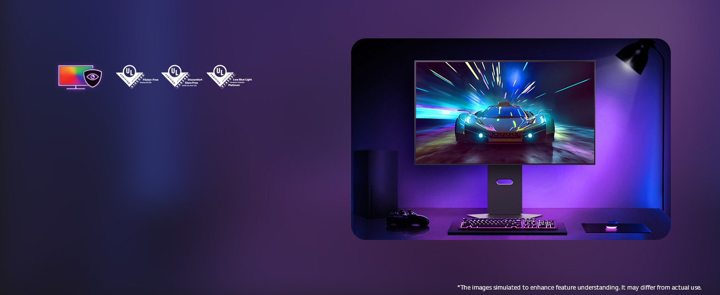 Indulge in a wider gaming experience with the 32″ 4K OLED. Impeccably fitting your desk, it will truly captivate your view with a grand sense of scale.