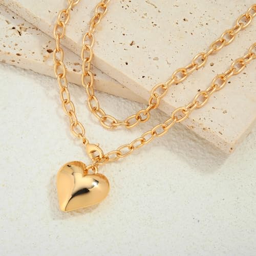 LILIE&WHITE Chunky Gold Sliver Heart Necklace for Women Chunky Link Chain Statement Necklace for Women – Trendy Costume Jewellery Gifts for Everyday