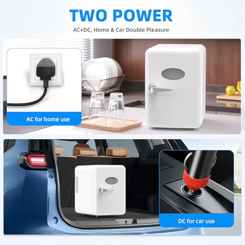 Mini Fridge, 4L/6 Can Mini Fridge for Bedrooms, Portable Small Fridges, AC+DC Power Cooler, for Bedrooms, Cars, Offices; Skincare, Makeup, Cosmetics, Food