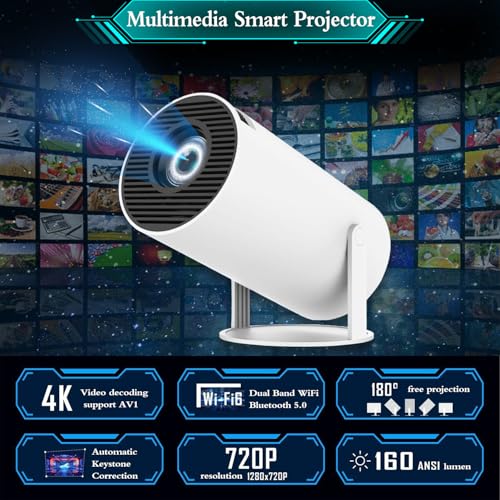 mini projector with 4K 1080P supportPortable projector with 180° rotatable 100-inch screenMovie projectorAutomatic keystone correctionCompatible with laptops, PCs, smartphones