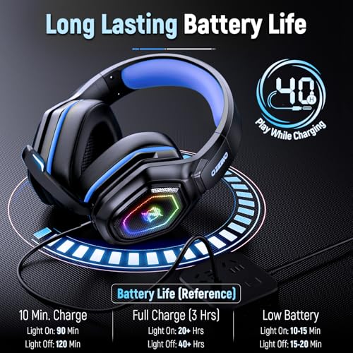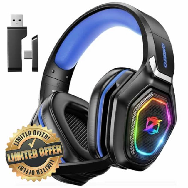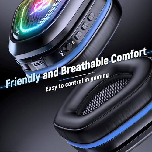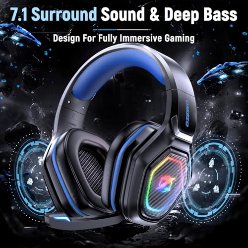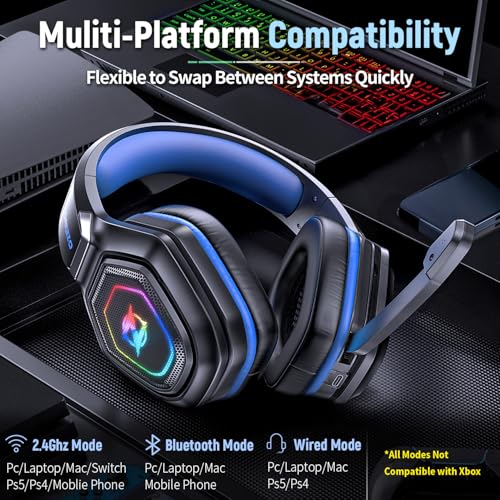 Ozeino Wireless Gaming Headset with Microphone, 2.4G & Type C Transmitter – 40h Battery Life – RGB Lighting Gaming Headphones for PS5, PS4, PC, Phone (Blue)