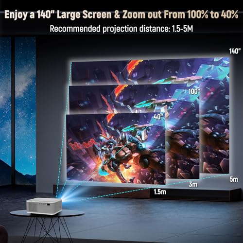 【Native 1080P&4K support, 600ANSI brightness】 Putbecy 4K projector has a native 1080P resolution, supports up to 4K, 600ANSI brightness and 20000:1 high dynamic contrast, Putbecy projector can display sharp and detailed HD images on a 140” giant projection screen. 40% Optical Off axis, Allowing for more freedom in placement, Putbecy video projector provides brighter, vivid and colorful images and videos!