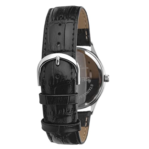 Sekonda Mens 40mm Evans Classic Three Hand Analogue Quartz Watch Alloy Case with Black Leather Strap
