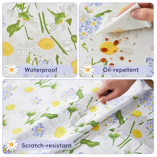 Water-Resistant: Crafted from high-quality water-resistant fabric, this round tablecloth effectively protects against spills and light rain. It is important to note that it is not 100% waterproof, so stains should be wiped off promptly to prevent damage.