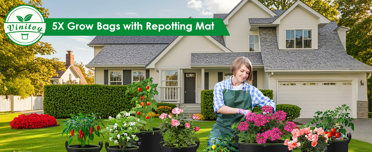 Wide Application: 5 Gallon (20L), Size: 30.5cm (D) x 27cm (H), You can grow different plants, fruits, vegetables, flowers, potted plants indoors or outdoors according to your preferences. This grow bag for vegetables come with 100cm x 100cm waterproof & leak-proof PE repotting mat, which is great for your to start your planting work like digging, watering, loosening soil, transplanting, fertilizing, pruning and hydroponics growing etc