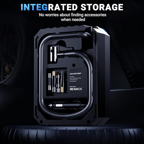 Tyre Inflator Air Compressor – Digital Car Tyre Pump 12V DC,Portable Car Accessories for Men,Electric Air Pump 150 PSI For Car Tyres,Bikes,Football,Preset Tyre Pressure & Auto Shutoff
