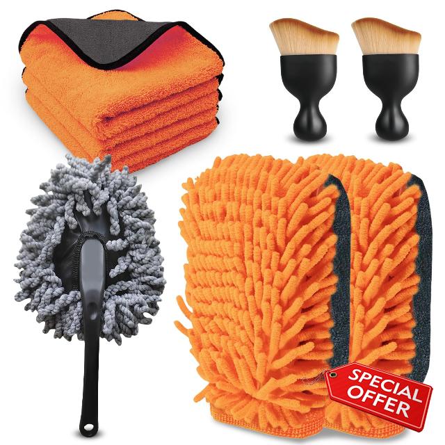 Versatile Car Cleaning Kit: 2 Pack microfiber car wash mitt 3 pack car cleaning cloths 2 car interior cleanings extra soft dusting brushes 1 car cleaning brushes, car cleaning tools, and exterior cleaning, make sure your car looks clean from the inside out.