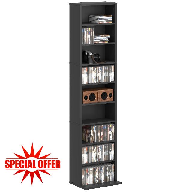 - Six adjustable shelves, holds 260 CDs/120 DVDs: CD storage tower holds plenty of your media. Shelves are easy to take out or remove, to cater for smaller or larger items